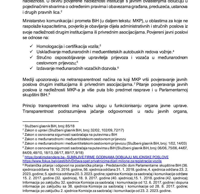 Ovakvim postupanjem, zaključili su, MKP se izložio riziku da stručne organizacije ne obavljaju povjerene javne poslove u skladu s propisima, što se može negativno odraziti i na sigurnost saobraćaja i živote građana u BiH.