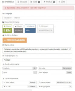 Ovako je glasio opis oglasa, koji je postavljen 3. oktobra prošle godine.
