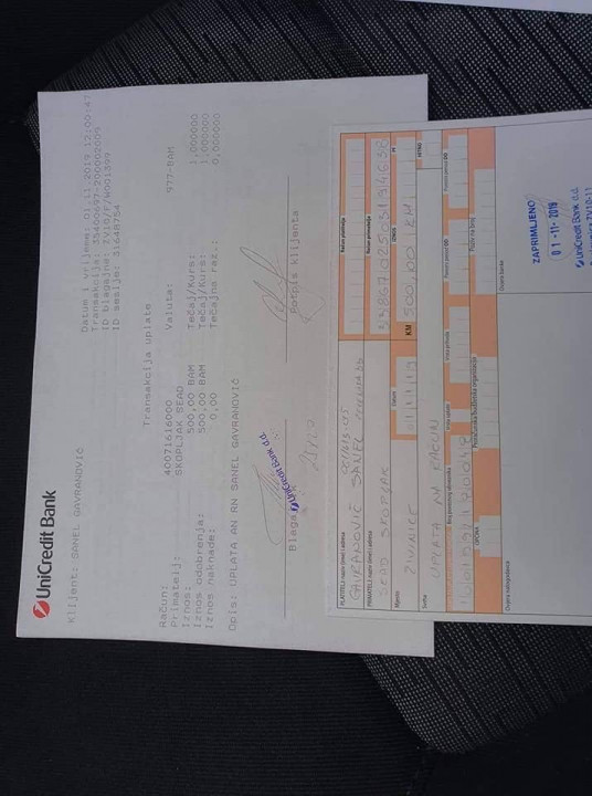 Ističe da posjeduju fotografije uplatnice kao dokaz o uplati, kao i fotografiju lične koju im je poslao Skopljak radi uplate avansa.