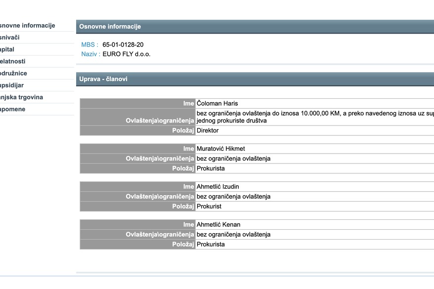 Vlasnici bh. naftnog giganta Hifa Oil d.o.o. Tešanj osnovali su novi poslovni subjekt pod nazivom “Euro Fly d.o.o.” Nova aviokompanija sjedište ima u Sarajevu. Kako se može vidjeti na Registru poslovnih subjekata u BiH kao osnivač vodi se Izudin Ahmetlić, a kao početni kapital upisano je 10.000 KM.