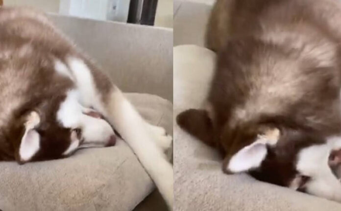 Jedan nestašni haski previše se zaigrao s vlasnikom, koji je sjedio do njega na kauču, te ga je u jednom trenutku čak počeo gristi, zbog čega mu je vlasnik očitao bukvicu.