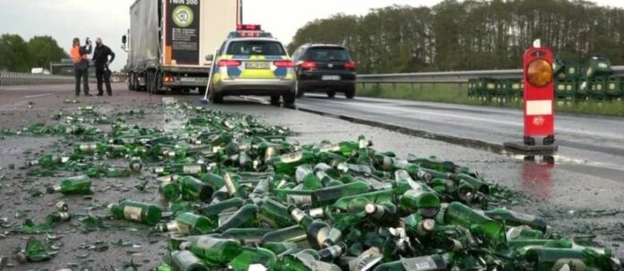 Gajbe piva pale su sa strane kamiona na putu kod sjevernog grada Bremena, što je skoro dovelo do potpunog prekida saobraćaja. Neki vozači su izašli iz svojih vozila i počeli da čiste put i uklanjaju boce i staklo kako bi ubrzali otvaranje saobraćaja.