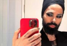 Naime, Božo se odlučio za crvenu, dugu haljinu od lateksa. Styling je upotpunio lakiranim čizmama na visoku petu, a na glavu je stavio omiljeni crni turban.