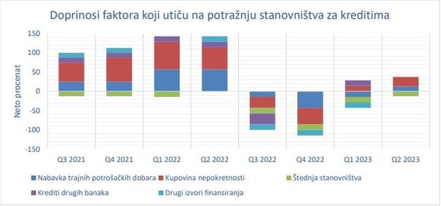 Na grafikonu ispod prikazan je neto procenat doprinosa faktora koji su uticali na promjenu potražnje stanovništva za kreditima.