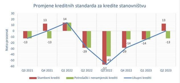 Kako su nam i poručili iz Centralne banke BiH (CBBiH), posljedni podaci nam govore da neto procenat promjene ukazuje na to da je došlo do neznatnog pooštravanja standarda za potrošačke i nenamjenske kredite, dok su standardi za stambene kredite ublaženi u odnosu na prethodni kvartal.