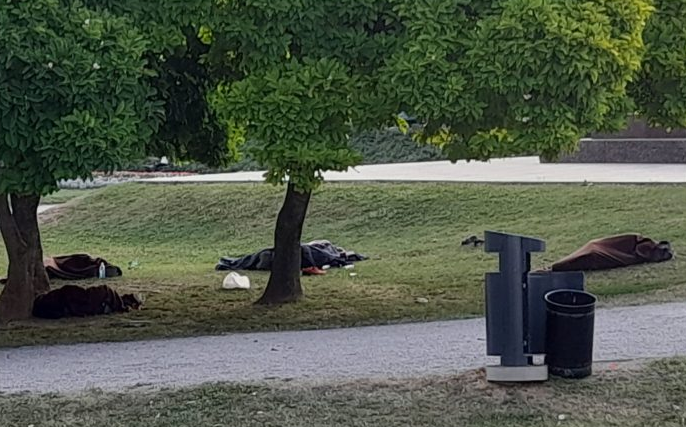 Ljudi spavaju na Tomislavcu (Foto: Čitatelj Zagreb.info)