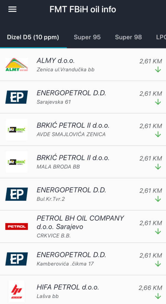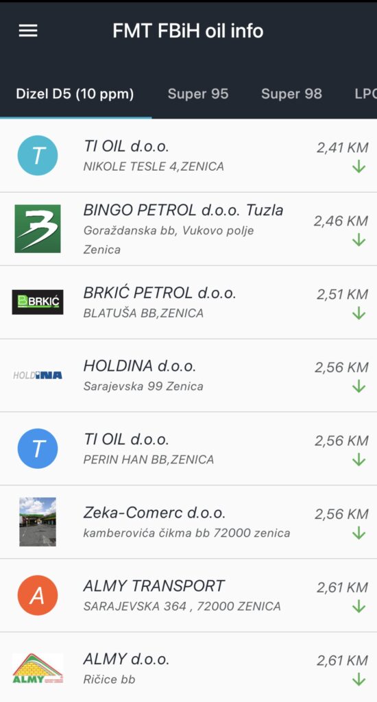 Poslije “Ti Oila”, sa pristupačnom cijenom dizel goriva slijedi “Bingo Petrol” u Blatuši, a potom Brkić Petrol. Najskuplji je dizel na benzinskoj pumpi Hifa i petrol AG.