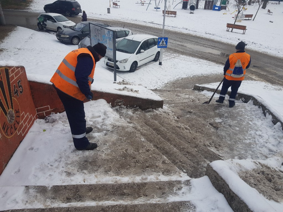 Gradske saobraćajnice su očišćene, a vrijedni komunalni radnici, koje smo zatekli danas na terenu, čiste i trotoare.