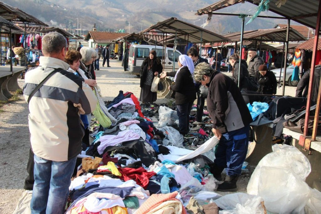 Jedan od trgovaca je i Sabahudin Halimić Gumeni, koji izloži ponešto polovne odjeće i prodaje, kaže, samo da se preživi. – Malo trenirke, malo jakne polovne, po 5 KM, po 7 KM, da se živi od nečega. Ali, narod nema para, nisam zadovoljan prodajom, slabo narod posjećuje pijacu. Više ih je ispred ulaza nego unutra, to vam sve govori – kaže Halimić.