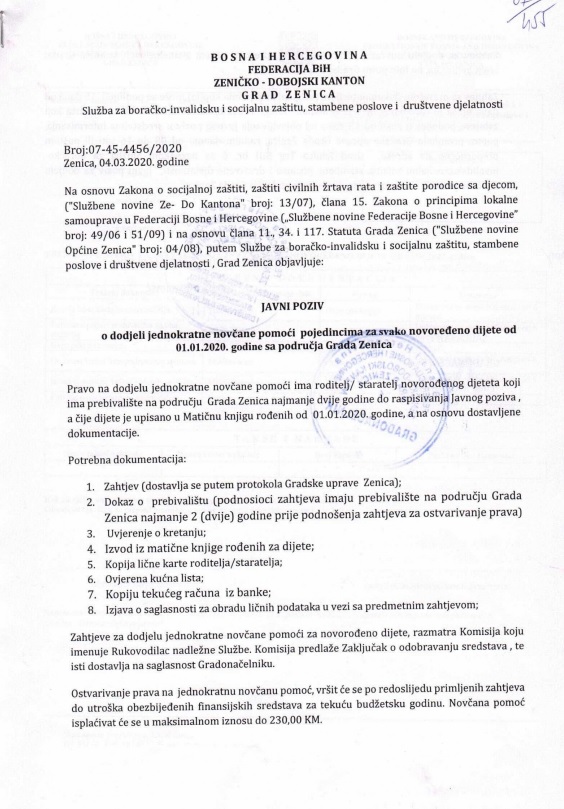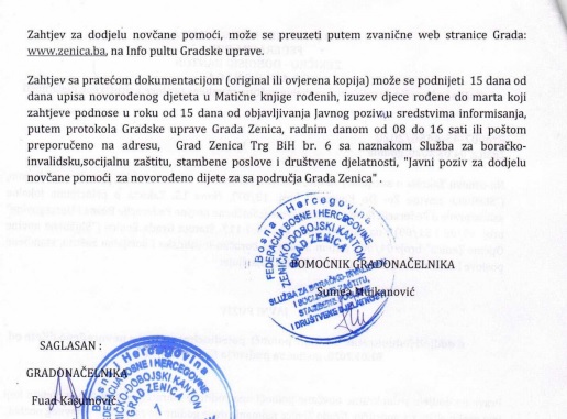 ZENICA: Raspisan poziv za dodjelu jednokratne novčane pomoći za svako novorođeno dijete