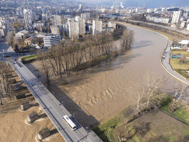 Rijeka Bosna u Zenici nabujala je zbog padavina, a mi donosimo snimke i fotografije kako danas izgleda iz zraka.