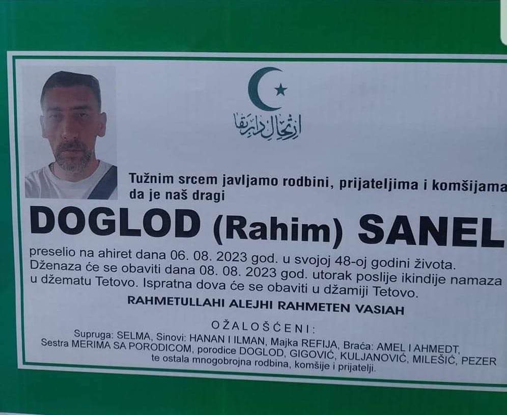 Dženaza-namaz preminulom Doglodu klanjat će se sutra, utorak, poslije ikindija-namaza, u džematu Tetovo.