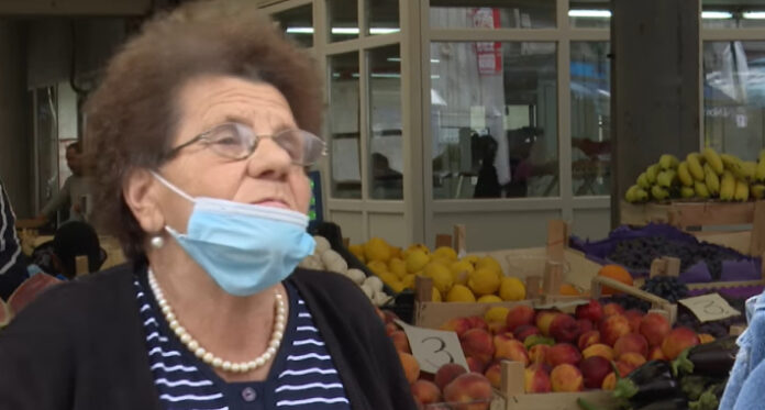 “Oni kupuju u malim količinama, po dva paradajza, ali kupe…”, kaže prodavačica na pijaci Muratka Banda.