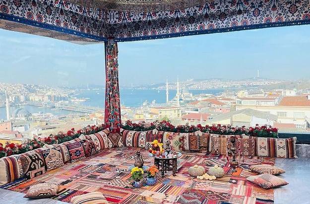 Sa prepoznatljive terase koja se nalazi na vrhu zgrade u Istanbulu pruža se jedan od najljepših na ovaj grad. Iako se na prvi pogled čini da je u pitanju kafić ili restoran uređen u tradicionalnom stilu, riječ je o unaprijed pripremljenom prostoru koji se iznajmljuje.