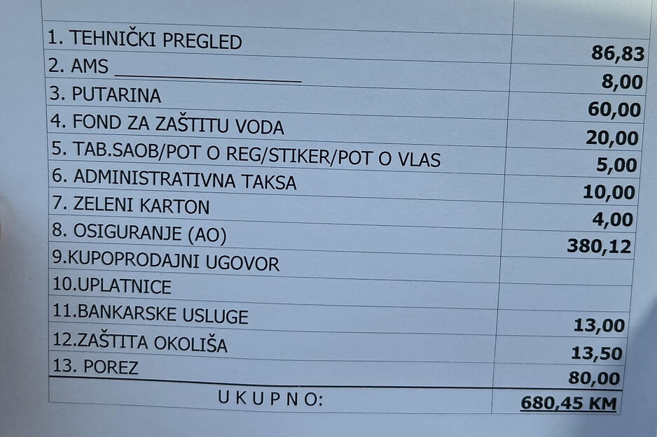 Jedan od primjera šta sve plaćamo prilikom registracije automobila