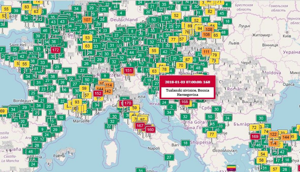 Prema mjerenjima Svjetske organizacije za monitoring kvalitete zraka (AQICN), ali i Udruženja Eko Akcija iz Sarajeva, zrak u ovim gradovima je izuzetno nezdrav, te se građanima preporučuje zaštita i smanjeno kretanje.